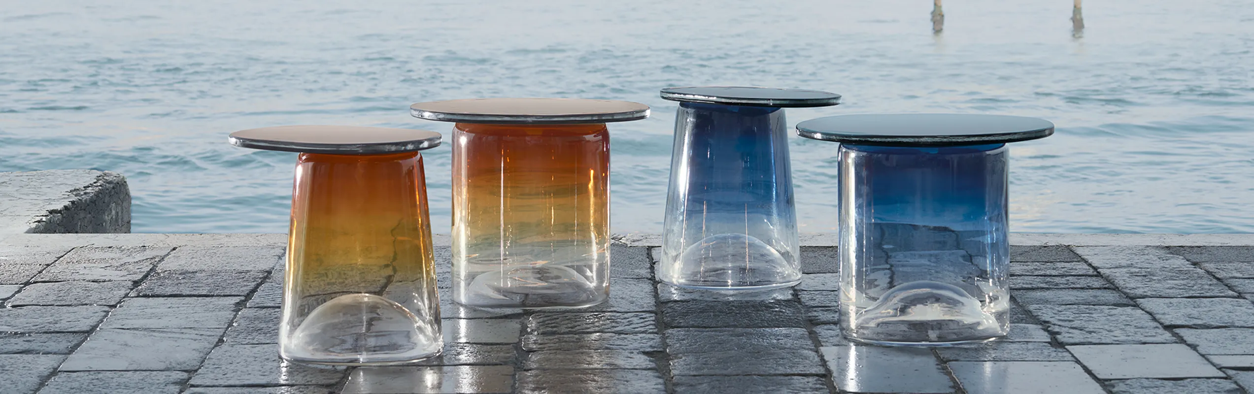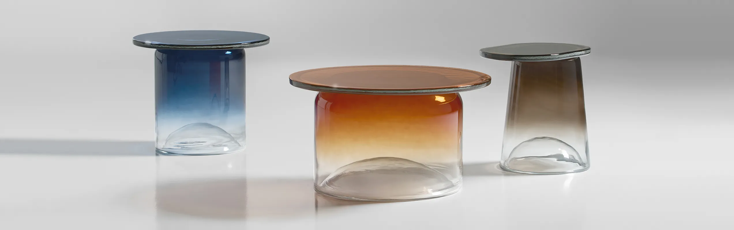 Glazen bijzettafels als sculpturale accenten