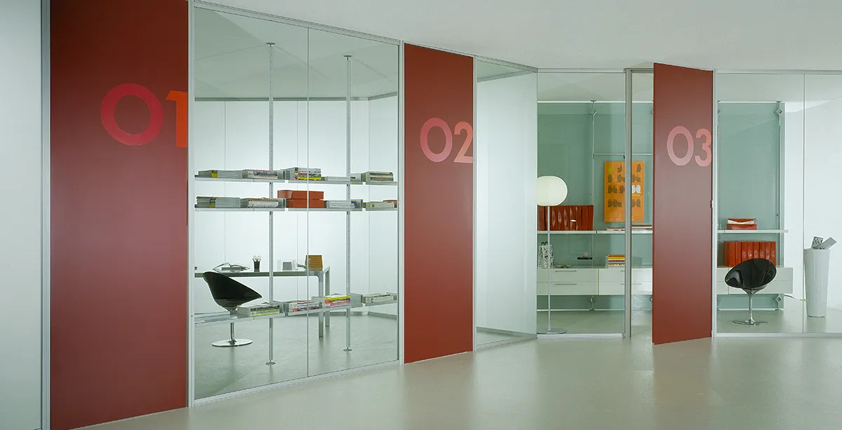 Vrijstaande wanden zijn zelfdragende systemen die niet aan het plafond bevestigd hoeven te worden. Ze zijn ideaal als tijdelijke of flexibele ruimteverdelers.